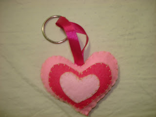 But one thing lead to another ... and from one pink heart, the creation grew to four various pink hearts of various shade and sizes sewed together with blanket stitch to form a decorative item that can be hung on handbags or even a keyring.